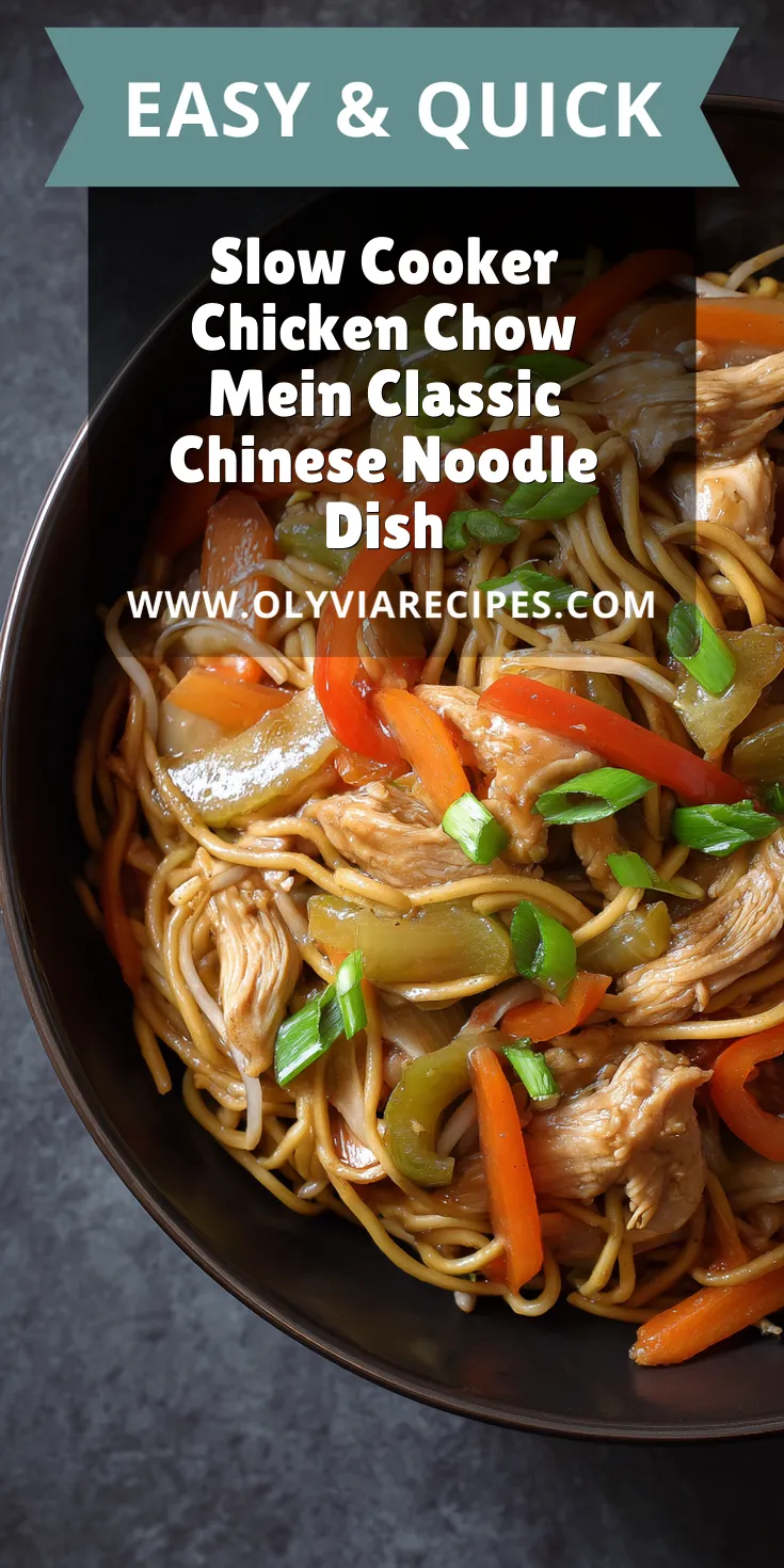 Enjoy your homemade Slow Cooker Chicken Chow Mein Classic Chinese Noodle Dish Recipe!