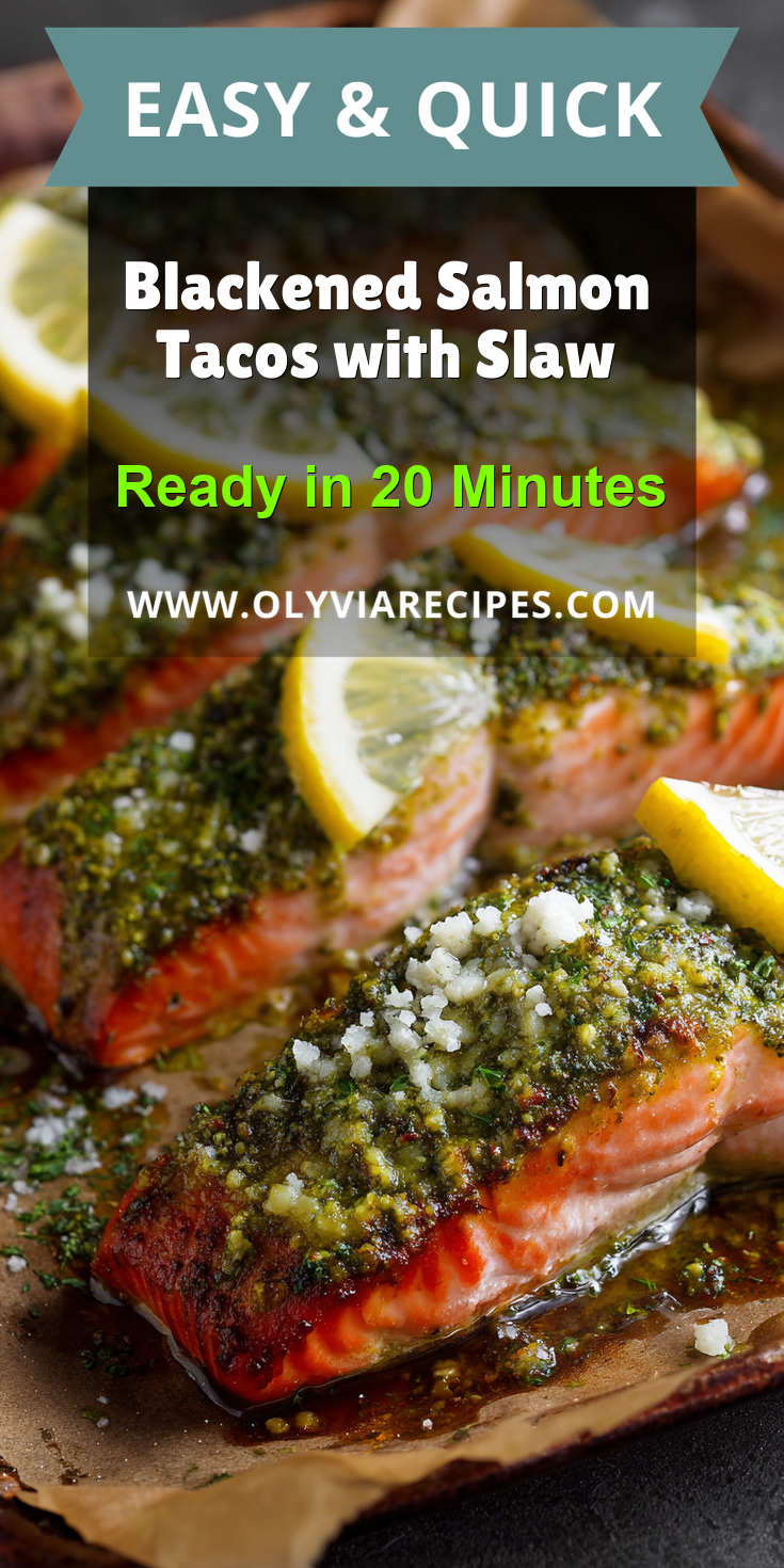 Enjoy your homemade Blackened Salmon Tacos with Slaw Recipe!