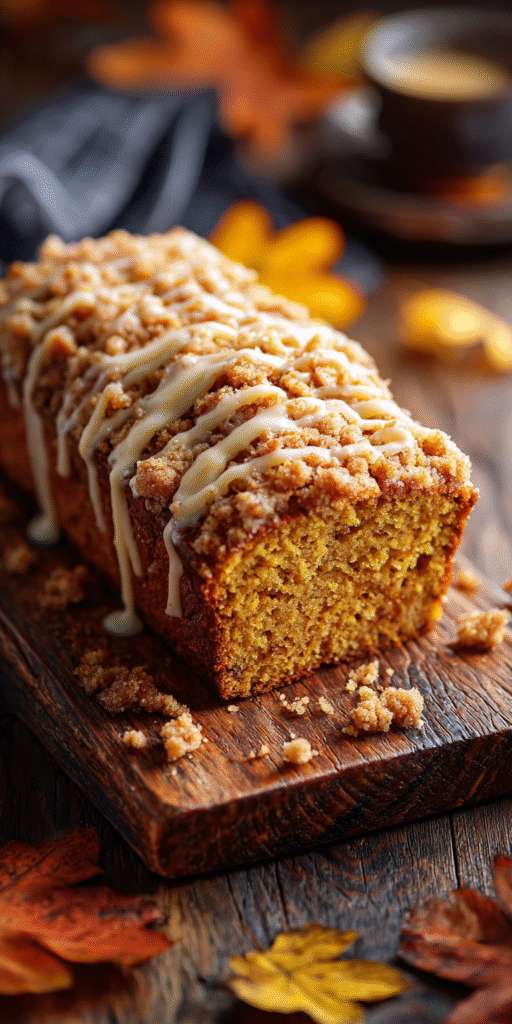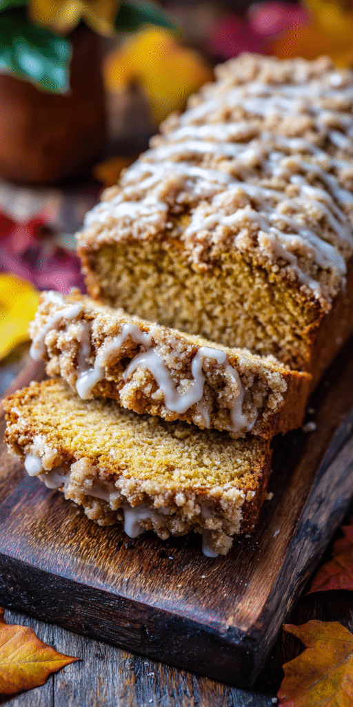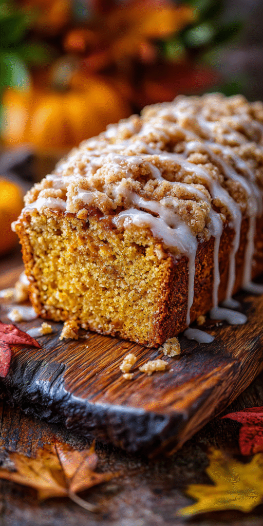 Classic Pumpkin Bread with Streusel Topping and Maple Glaze