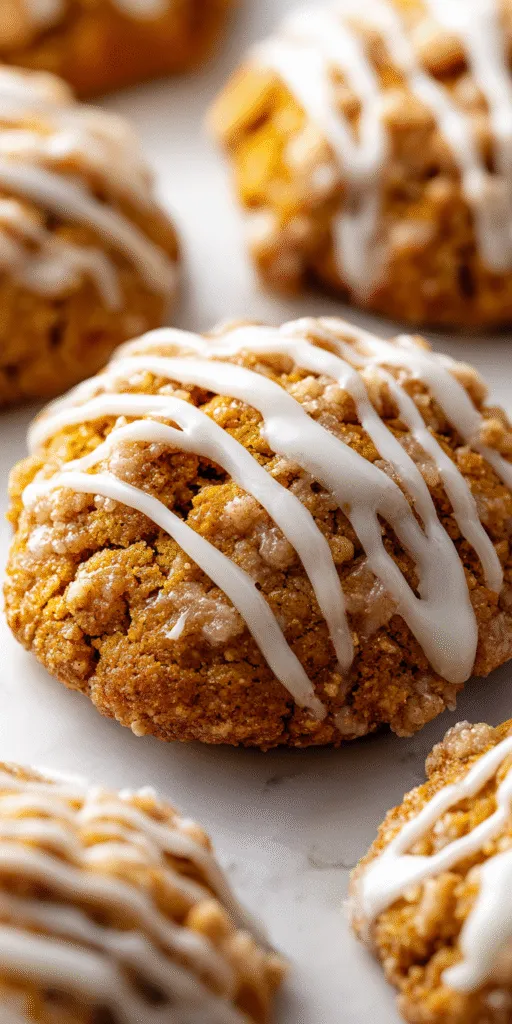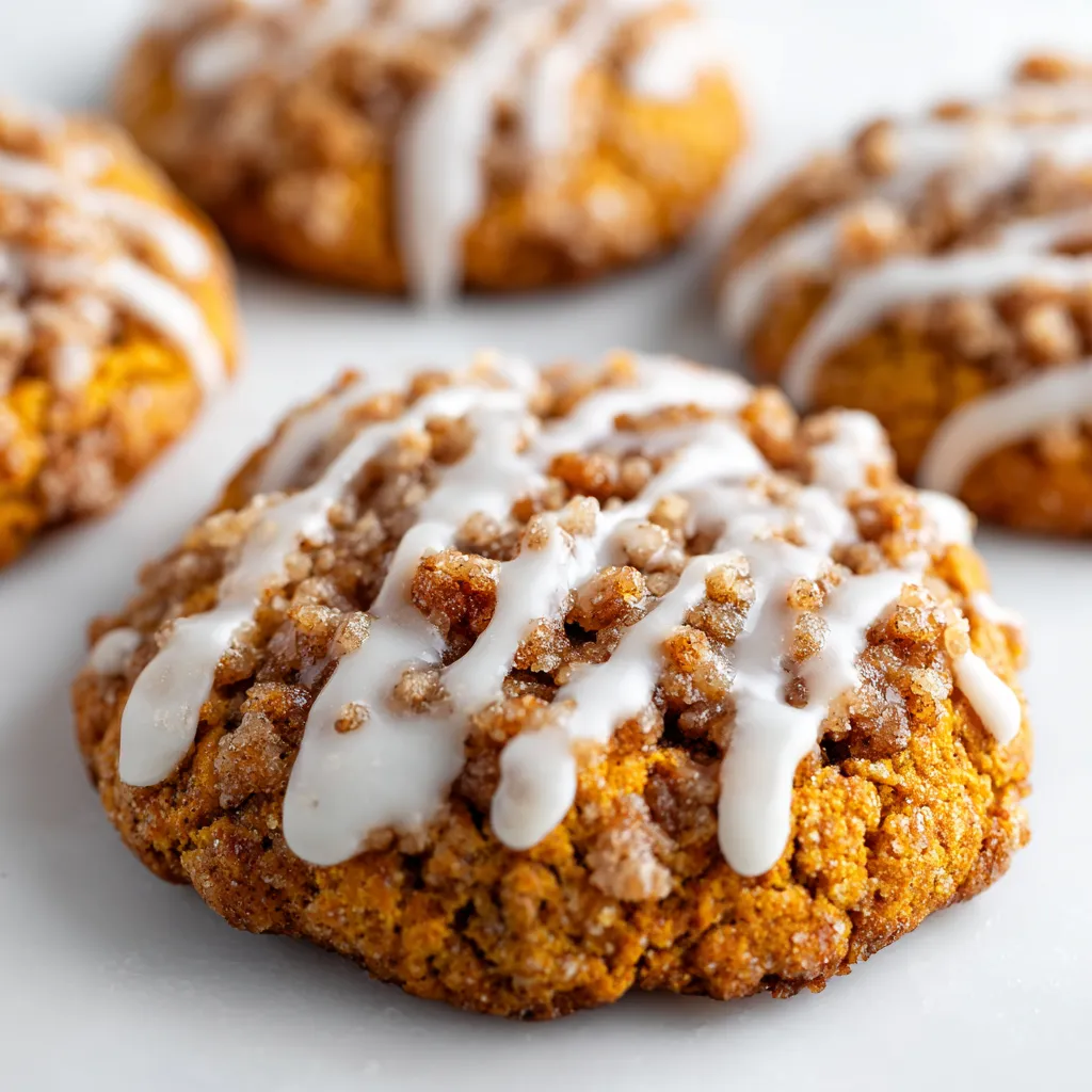These pumpkin coffee cake cookies combine everything you love about coffee cake with the perfect chewy cookie texture. They’re topped with a generous cinnamon streusel and finished with a sweet vanilla glaze that makes them absolutely irresistible.