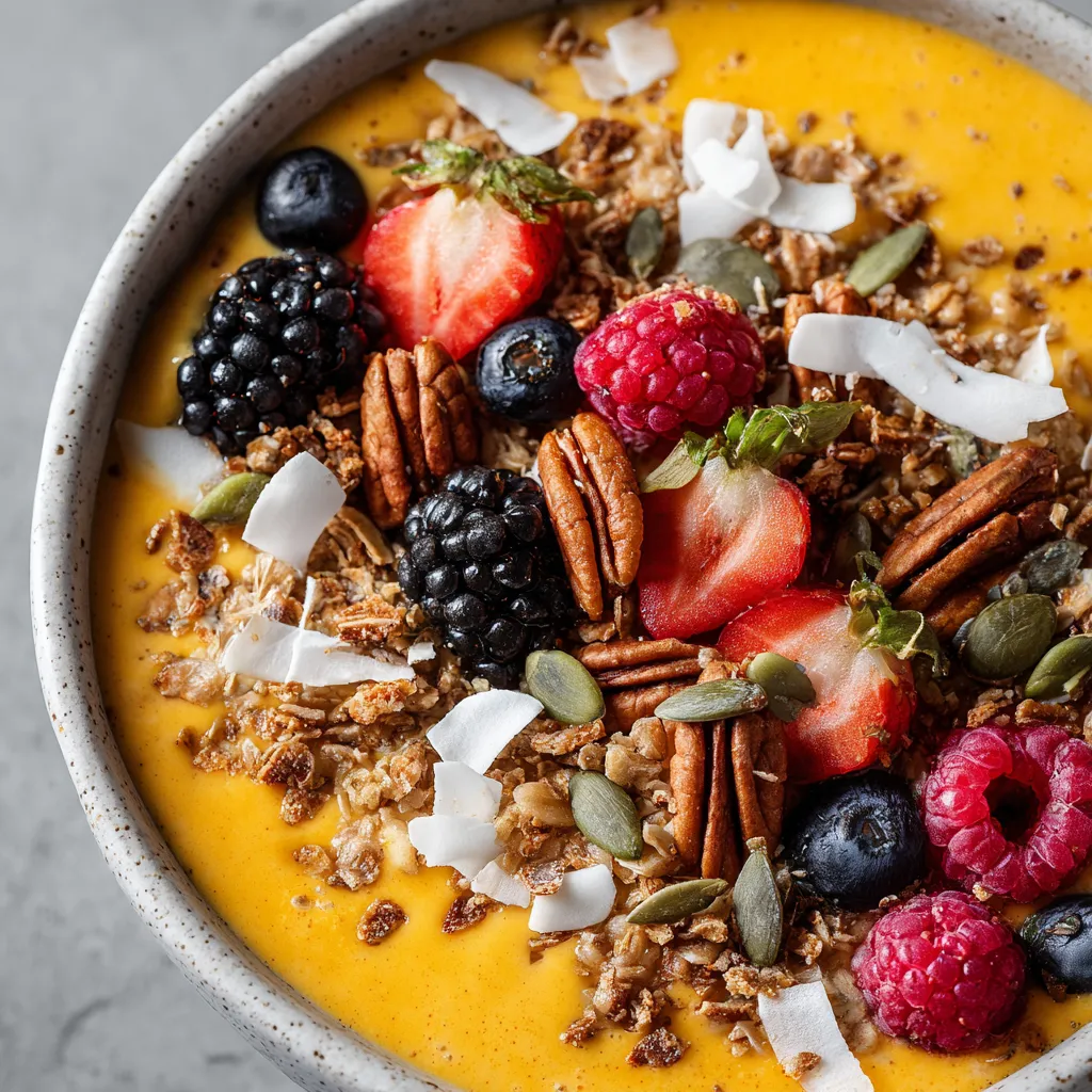 - Pour and top by scooping the smoothie into your chilled bowl and immediately adding your chosen toppings in sections. This creates those beautiful healthy pumpkin smoothie bowl photos you see everywhere!